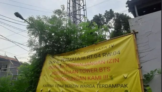 Sejumlah warga Perumahan Villa Mutiara, Kelurahan Sawah Baru, Kecamatan Ciputat, Kota Tangerang Selatan, menyuarakan penolakan terhadap rencana perpanjangan izin tower Base Transceiver Station (BTS) yang berdiri di lingkungan mereka.