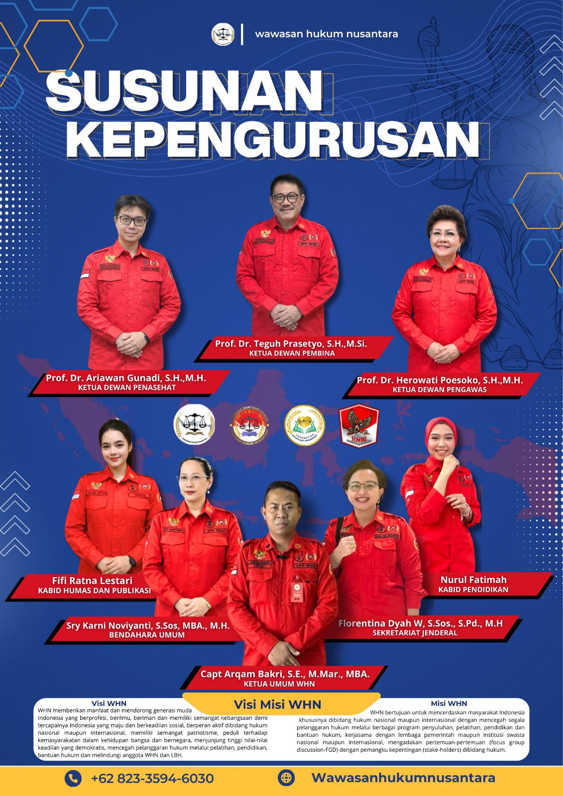Selaku ketua umum WHN, saya sangat berterimakasih kepada seluruh kader WHN yang sangat aktif dalam menghidupkan roda organisasi sehingga manfaatnya banyak berdampak langsung terhadap masyarakat. Adapun struktur pengurus inti WHN saat ini antara lain: