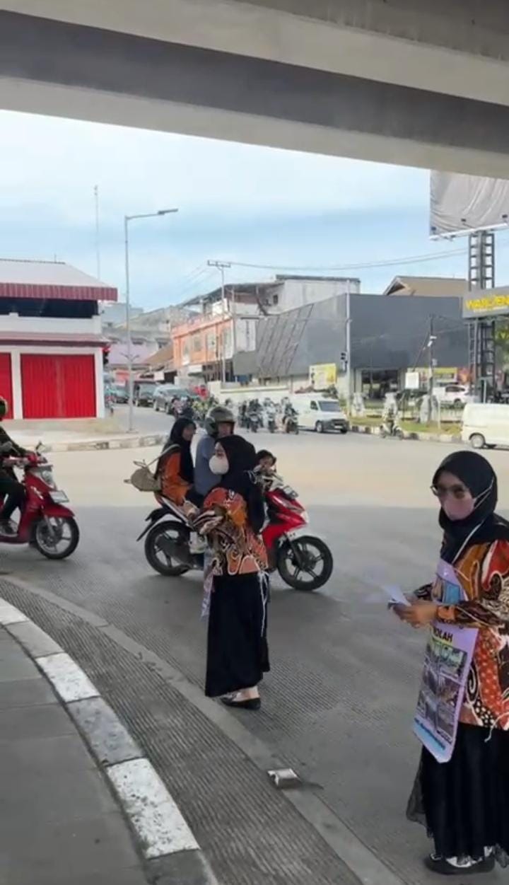 Sebelum Acara Buka Puasa Bersama,para pengurus,kepala sekolah dan guru TK Kartika II-4 Palembang melakukan promosi melalui sebar brosur disekitar lampu merah sekip angkatan 66 Palembang.